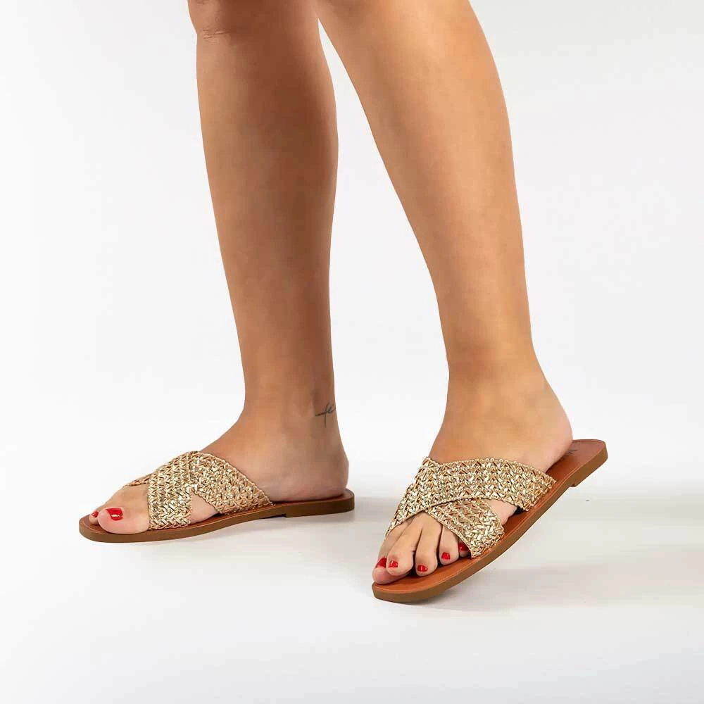 A Rasteira Cruzada Lane é sinônimo de praticidade e estilo natural. Com tiras largas trançadas, ela traz um toque artesanal e leve ao visual. O design das tiras garante um encaixe confortável, enquanto a palmilha macia proporciona bem-estar ao caminhar.
