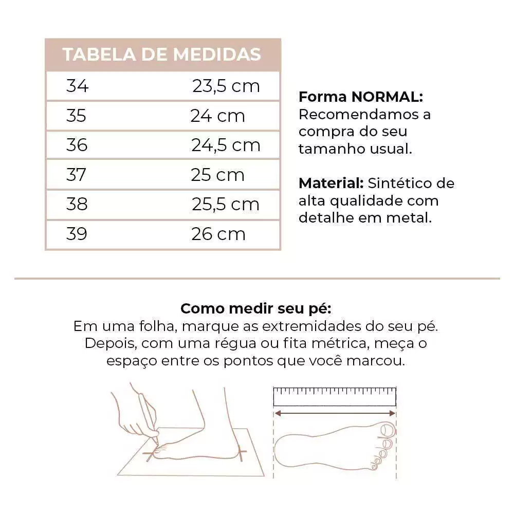 A Sandália Metal Suzana é um modelo elegante e moderno, perfeito para quem gosta de estar sempre estilosa no dia a dia.