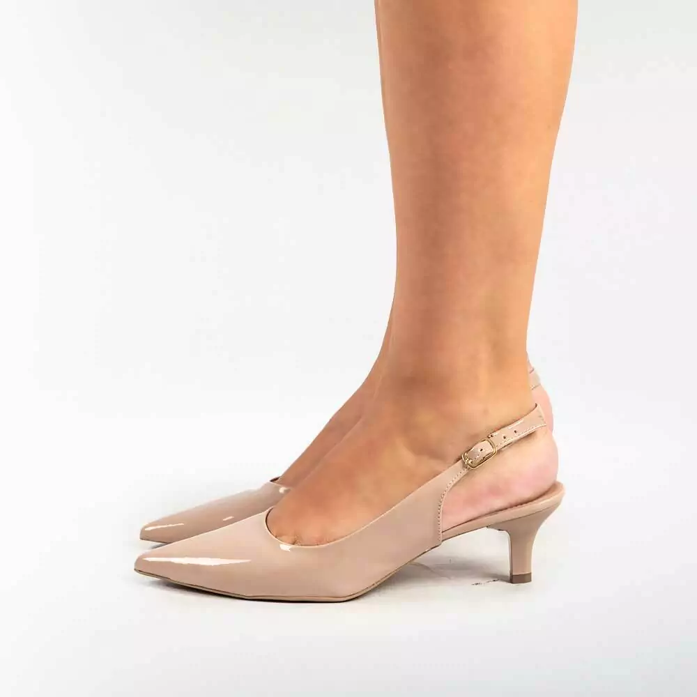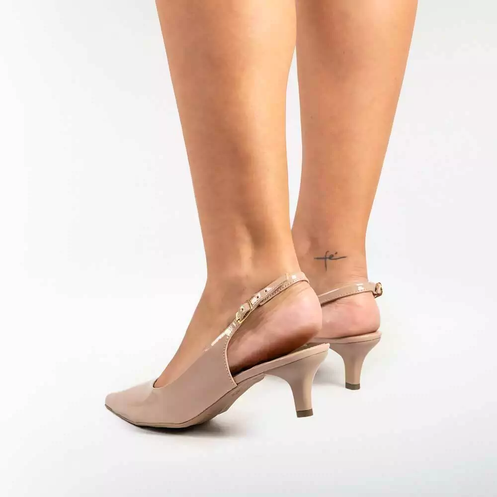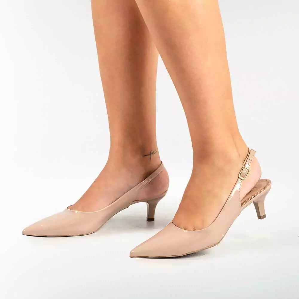 O Scarpin Tânia é um modelo elegante e atemporal, ideal para quem busca sofisticação com conforto no dia a dia. Com acabamento envernizado, salto baixo e design slingback, ele une charme e praticidade em cada detalhe.